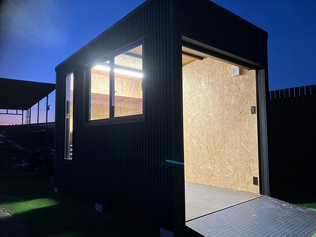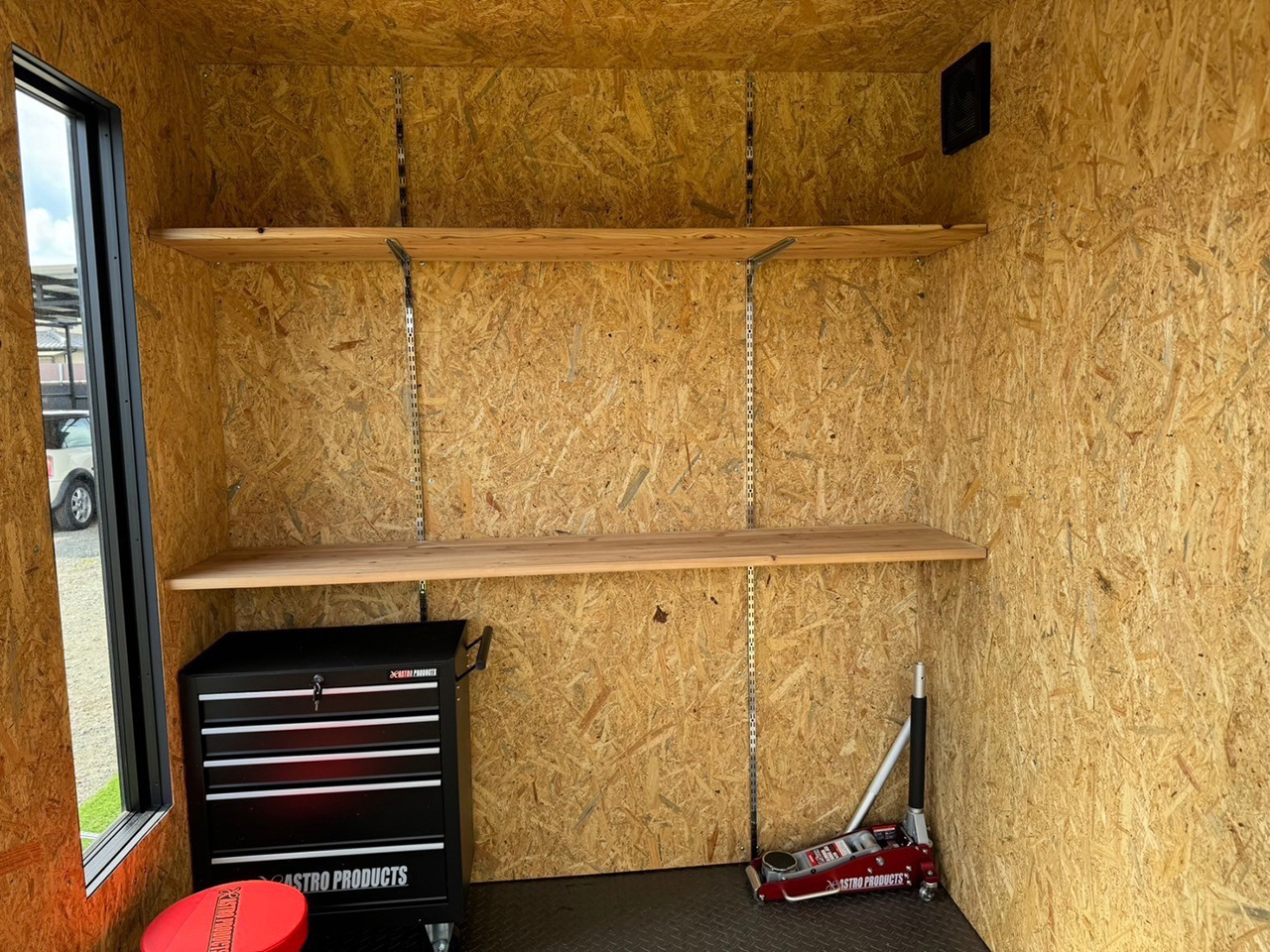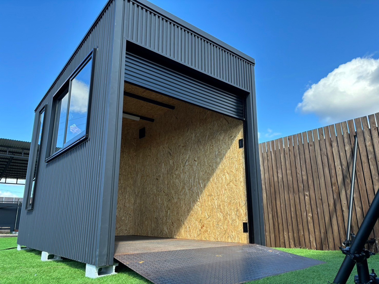 ⼿動シャッター・スロープ・LED照明・内壁OSB合板
