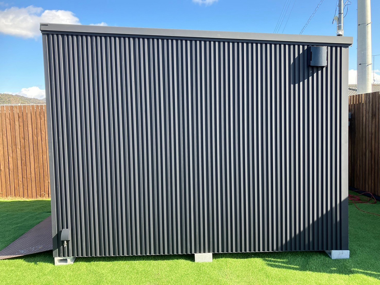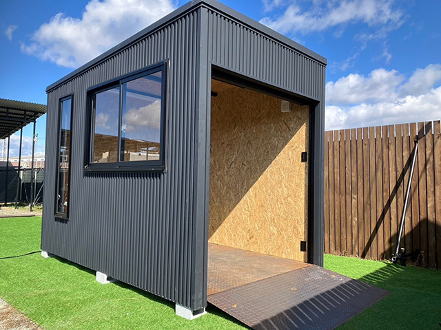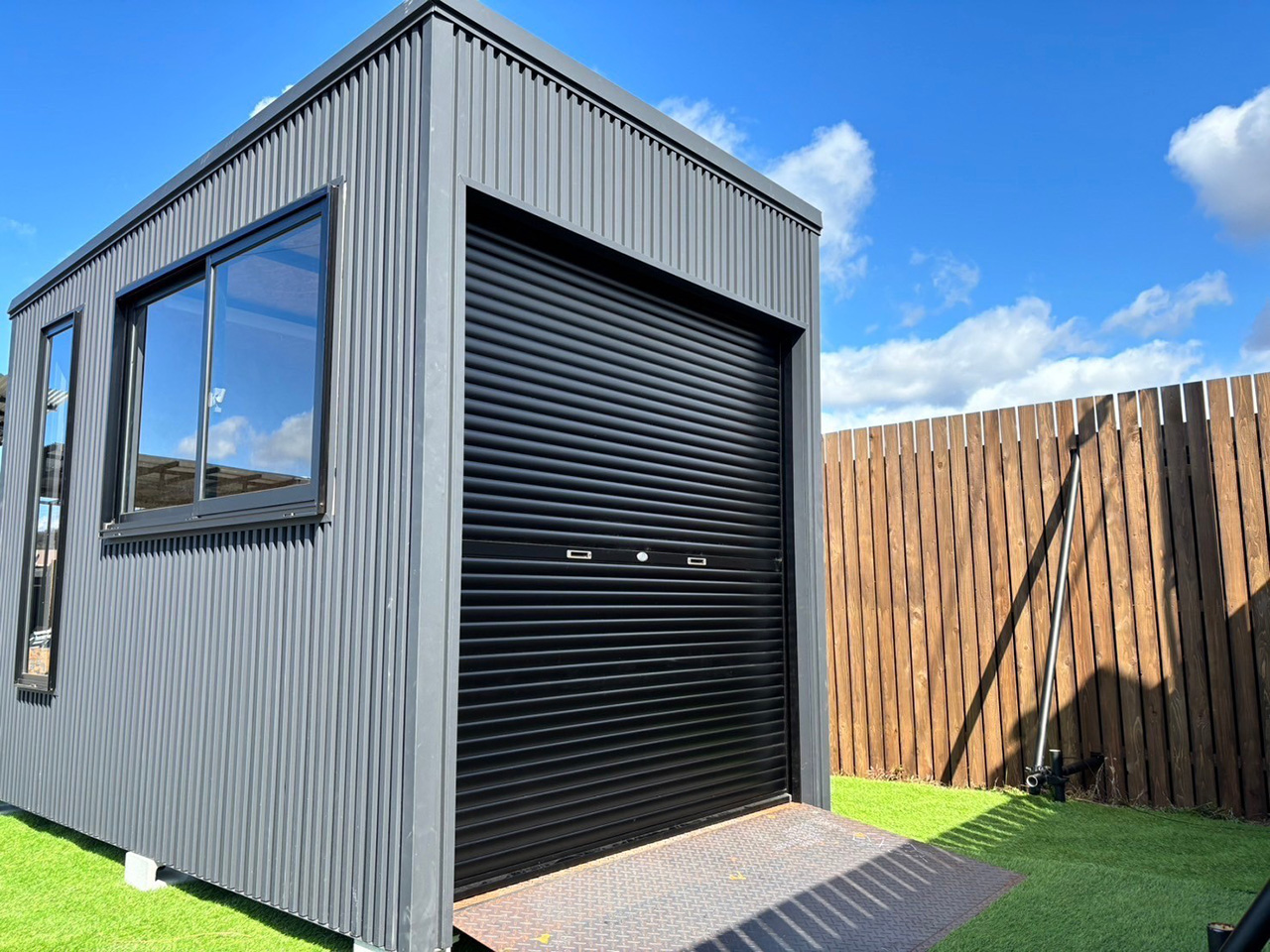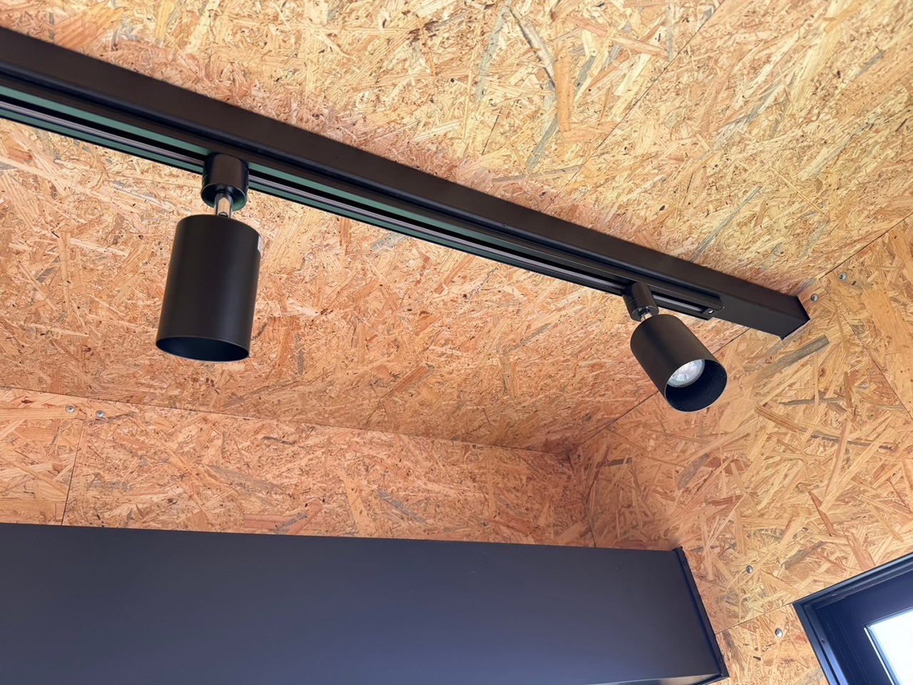 ⼿動シャッター・スロープ・LED照明・内壁OSB合板